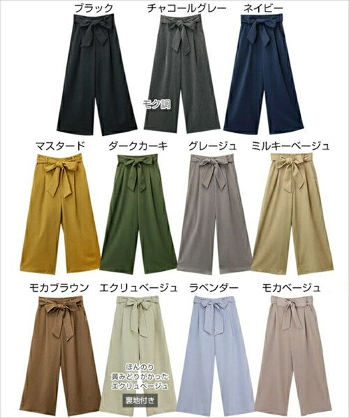 ワイドパンツ レディース パンツ ワイド きれいめ 送料無料 りぼん ベルト ベルト付きワイドパンツ ガウチョパンツ フォーマル 秋 春夏 ハイウエスト 黒 スカーチョ スカンツ 大きいサイズ ゆったり ブラック ベージュ モカ 大人 コーデ シンプル ベーシック