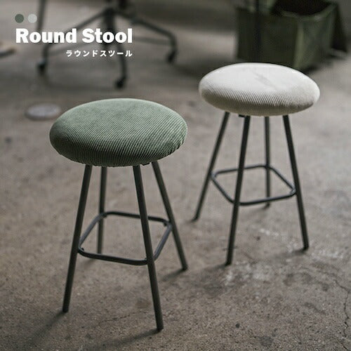 丸型 丸椅子 円形 ラウンド アンティーク チェア モダン グリーン グレー スツール 椅子 イス いす おしゃれ コーデュロイ スチール 軽量 韓国 韓国雑貨 azm 家具