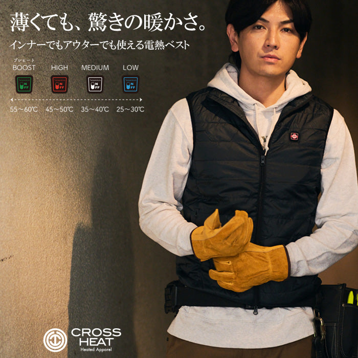 電熱ベスト ヒーターベスト バッテリーセット 大容量20000mAh 背中 お腹 CROSS HEAT R00 ヒーティングシステム 防寒ベスト 冬用 作業着 アウトドア バイク 通勤通学 男女兼用 ユニセックス outdoor